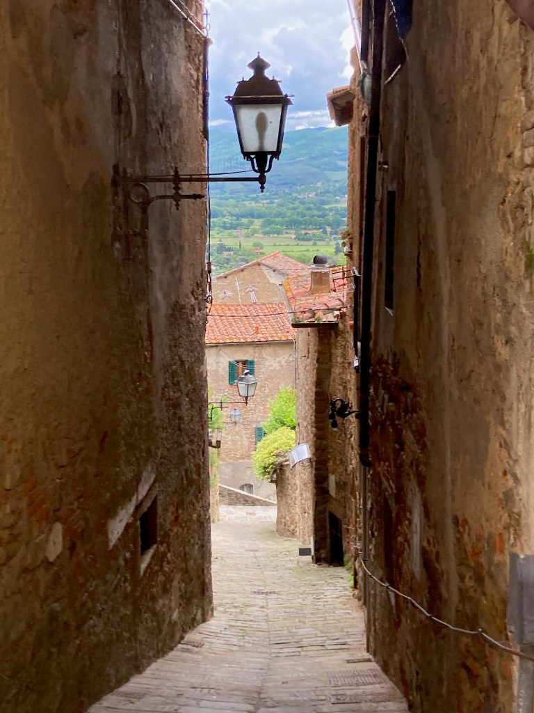 Picture postcard scenery with medieval towers and hill towns and rich farm land.