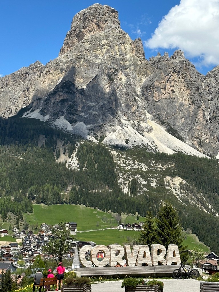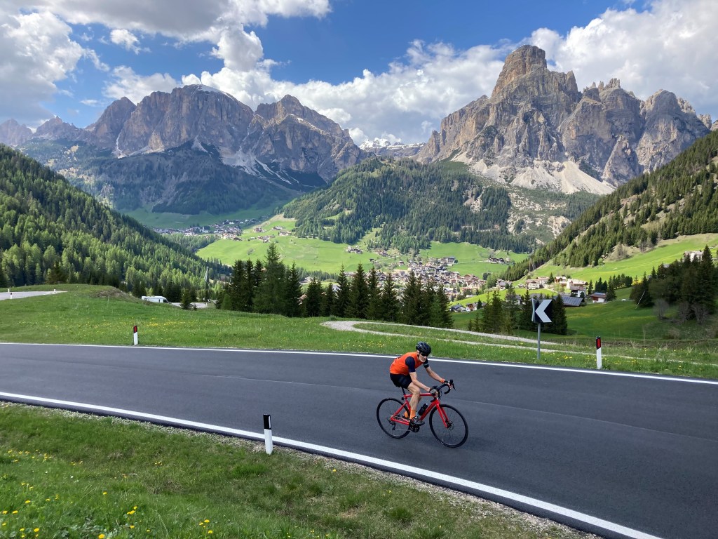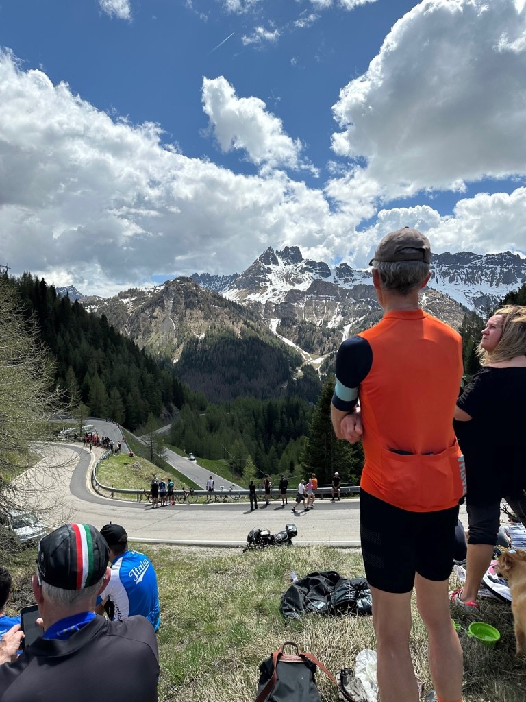 Stage 19. The “Queen Stage” of the race. We biked and hoofed it up to Passo Campolongo, the first of the five! major climbs through the Dolomites. Then we rode over the pass ourselves and back home. We rejoiced greatly at the stunning scenery (and no rain) on what was our final day of cycling tour, the Queen Stage for us too.
