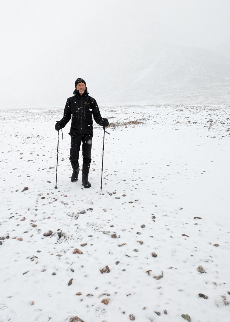Our first hike over the tundra and permafrost in a gentle snowfall.