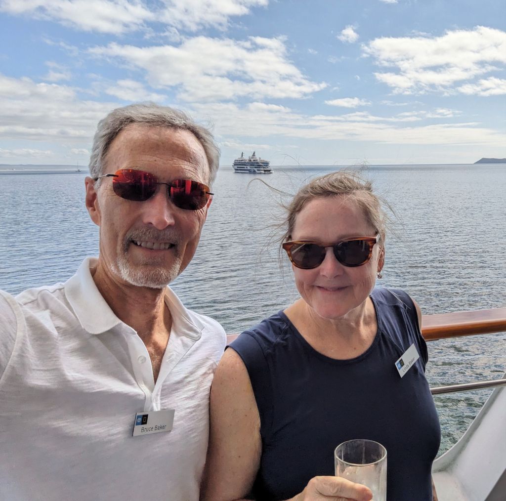 Three flights, two nights, seven coffees, three buses, one zodiac, one champagne, and here we go! Galapagos voyage underway!