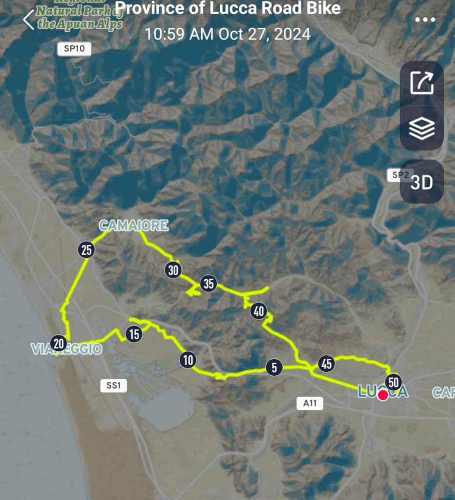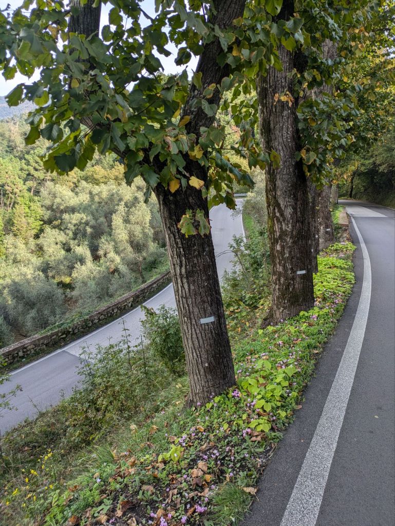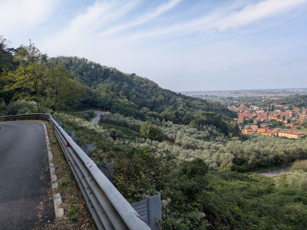 This ride has it all! You name it! You want hills? Switchbacks? Elevation? Beach front Promenade? Highway? City? Country? Gravel? Dirt? Detours? Woodland beauty? Sweeping vistas? Vineyards? Roman relics? Single track in tiny hilltop villages? Moss covered descents? Broken asphalt and wheel-swallowing holes? Dead rats? (I rode over one). And more! I survived! 😅🚲
