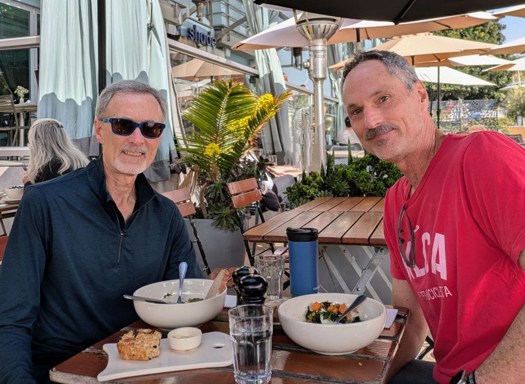 Enjoying Cali massaged kale and truffle oil rubbed farro bowls with my favorite movie star in Hermosa (with organic spelt and quinoa scone on the side), avoiding the tariff tax on french fries.